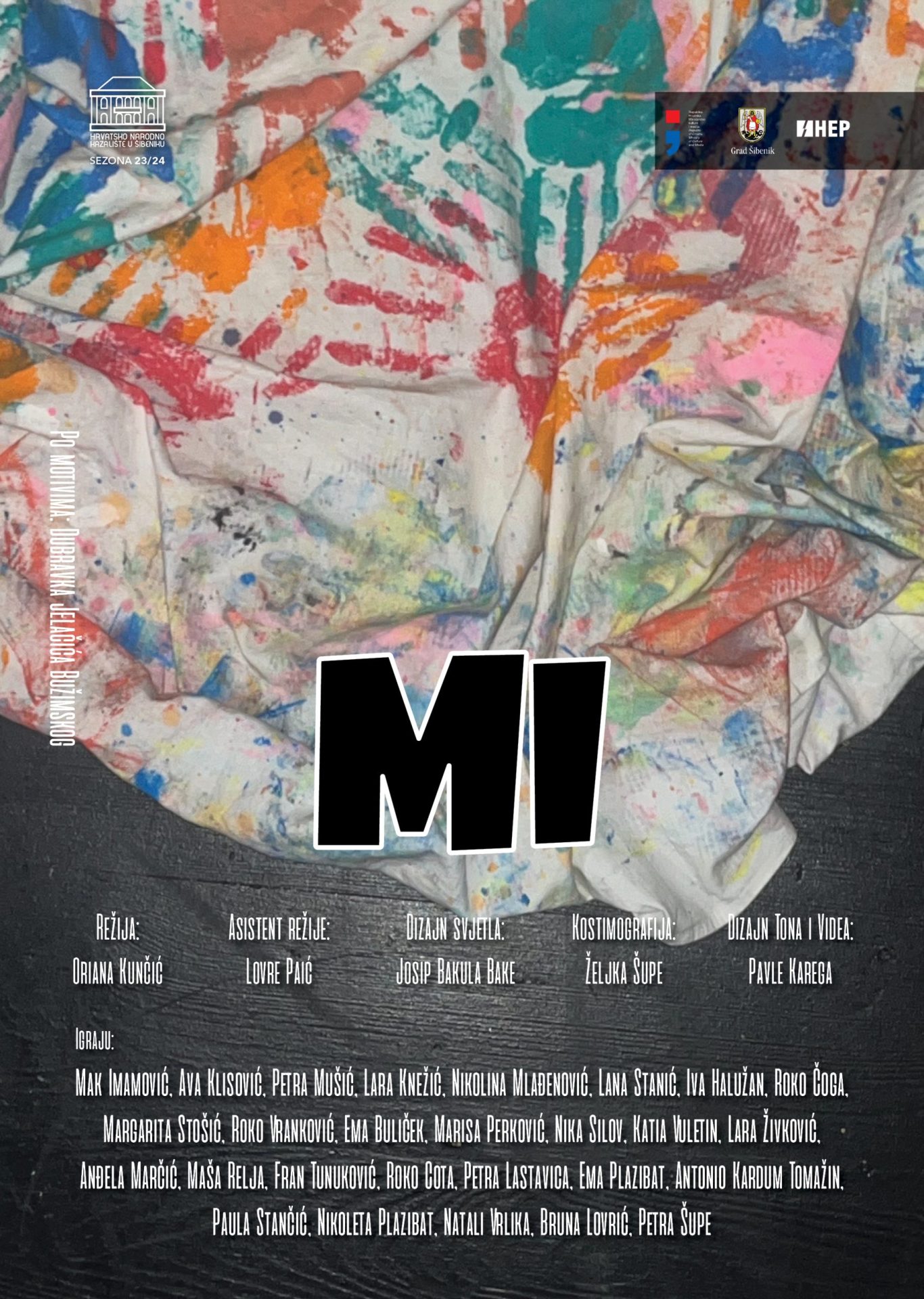 Režiju potpisuje Orijana Kunčić. U predstavi igraju: Mak Imamović, Ava Klisović, Petra Mušić, Lara Knežić, Nikolina Mlađenović, Lana Stanić, Iva Halužan, Roko Čoga, Margarita Stošić, Roko Vranković, Ema Buliček, Marisa Perković, Nika Silov, Katia Vuletin, Lara Živković, Anđela Marčić, Maša Relja, Fran Tunuković, Roko Cota, Petra Lastavica, Ema Plazibat, Antonio Kardum Tomažin, Paula Stančić, Nikoleta Plazibat, Natali Vrlika, Bruna Lovrić, Petra Šupe.