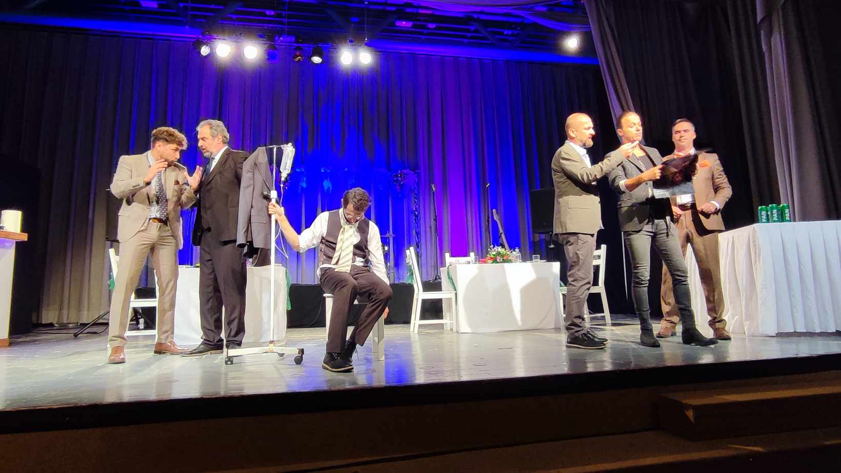 Na kazališnim daskama Doma INA rafinerije odigrana je zajednička predstava Teatra Exit, Ludens teatra i Kulturnog centra Osijek „Testosteron“ u nedjelju, 15.10.2023. u sklopu 16. Festivala regionalnih kazališta Prolog.