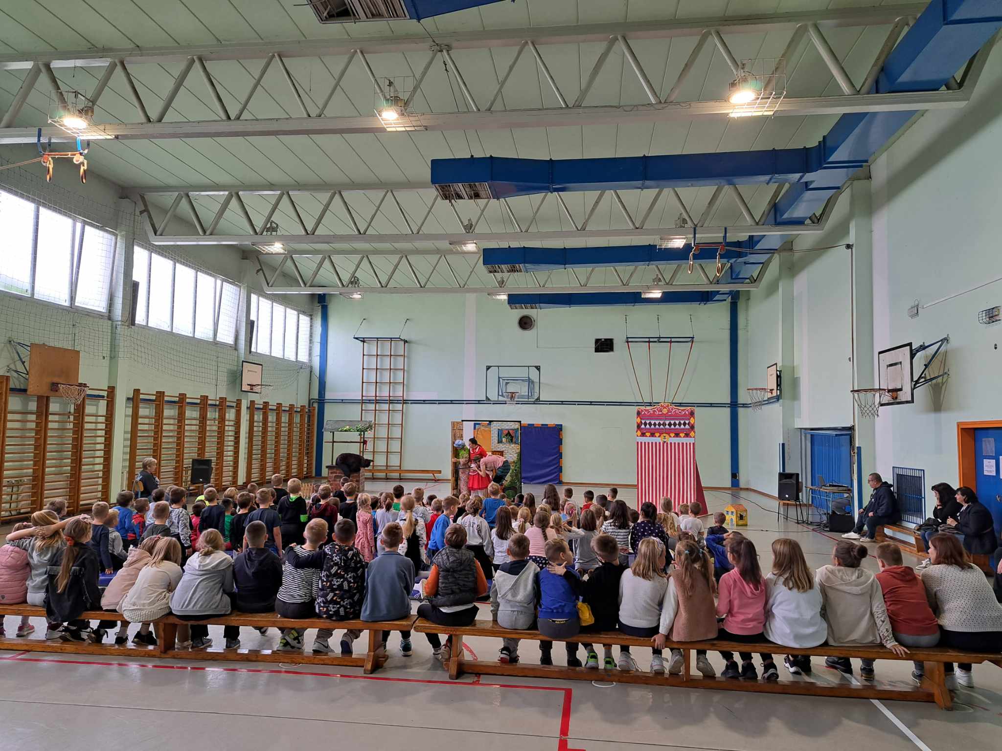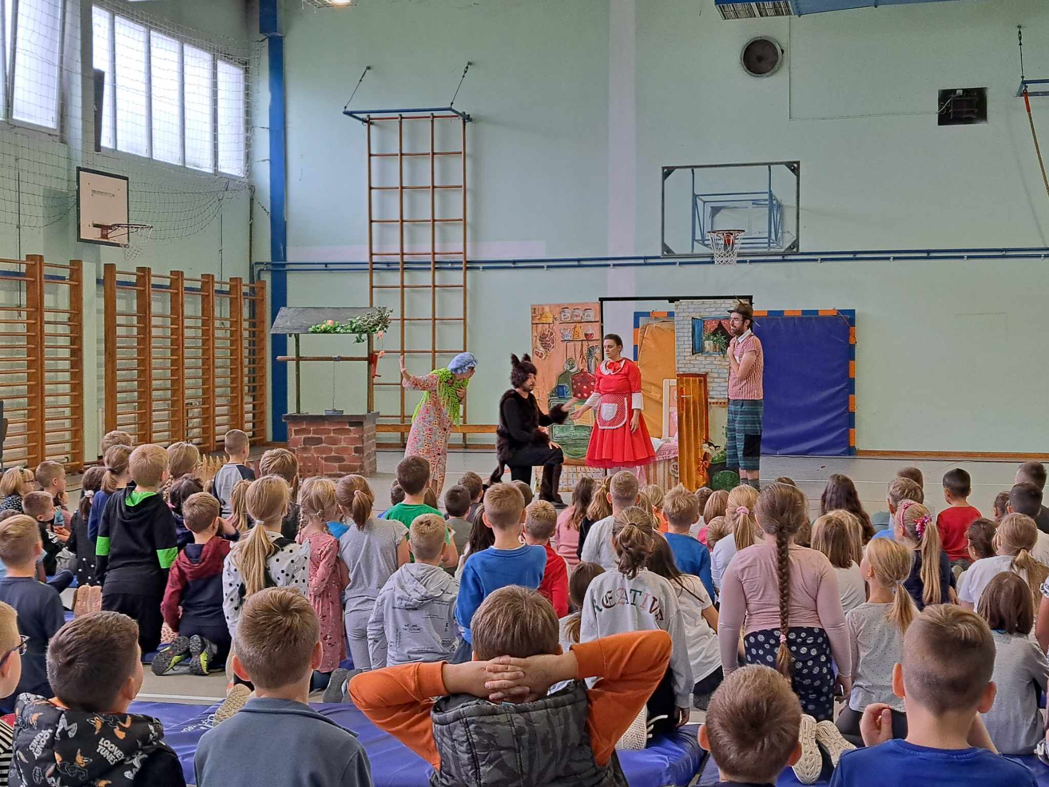 U prostoru Osnovne škole Braća Ribar izvedena je, danas, 27.10.2023., predstava za djecu “Crvenkapica” Gradskog kazališta Sisak. Predstava prepuna humora, uz neizostavnu pjesmu i ples mladih glumaca, te malo kazalište lutaka dočaralo je poznatu priču braće Grimm razveselivši učenike nižih razreda OŠ B.Ribar.