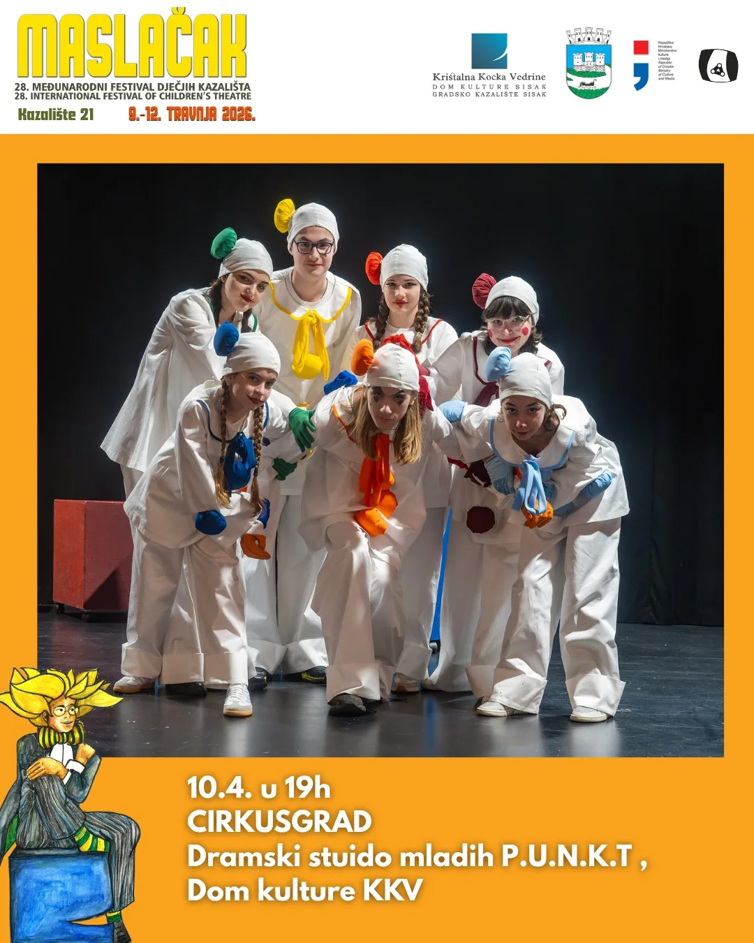Organizator 28. Međunarodnog festivala dječjih kazališta Maslačak je Dom kulture Kristalna kocka vedrine Sisak, pod pokroviteljstvom Grada Siska i Ministarstva kulture i medija Republike Hrvatske, uz potporu Gradskog muzeja Sisak.