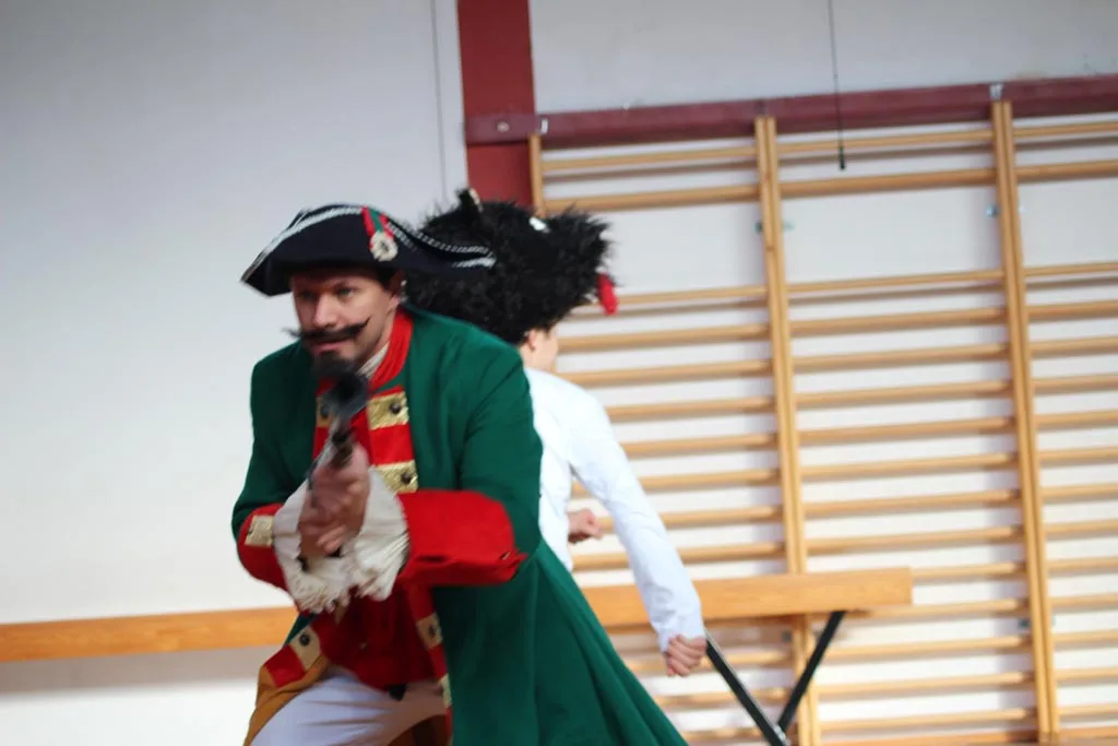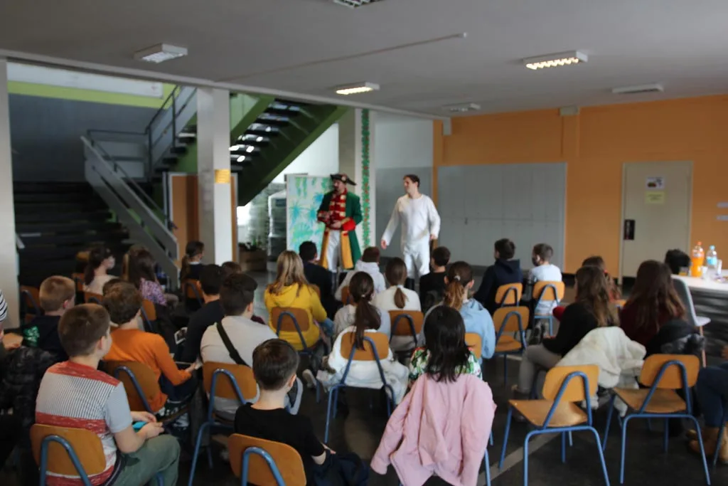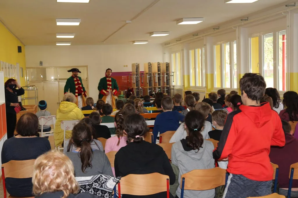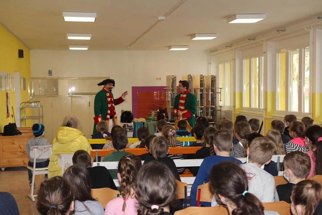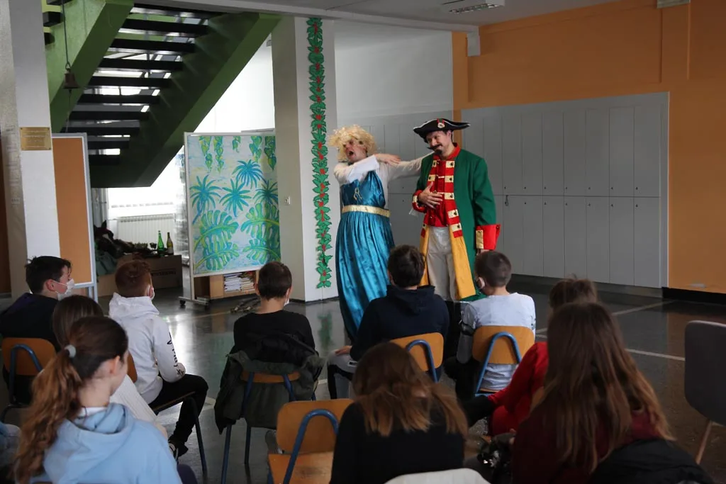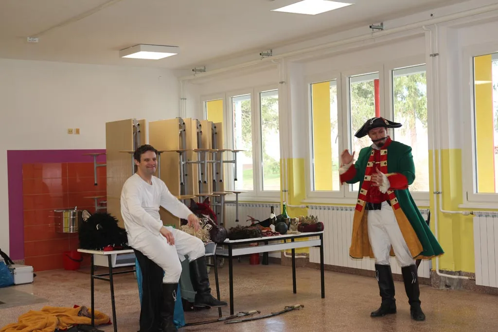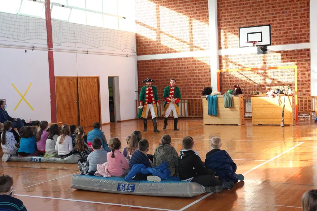 Djecu Komareva, Jabukovca i Gline razveselili su danas, 4.2.2021. godine glumci Gradskog kazališta Sisak s predstavom “Čudnovate zgode baruna Munchausena” Filip Detelić i Marko Hergešić, jedan od koordinatora projekta za izvođenje dječjih predstava na području pogođenim potresom.
