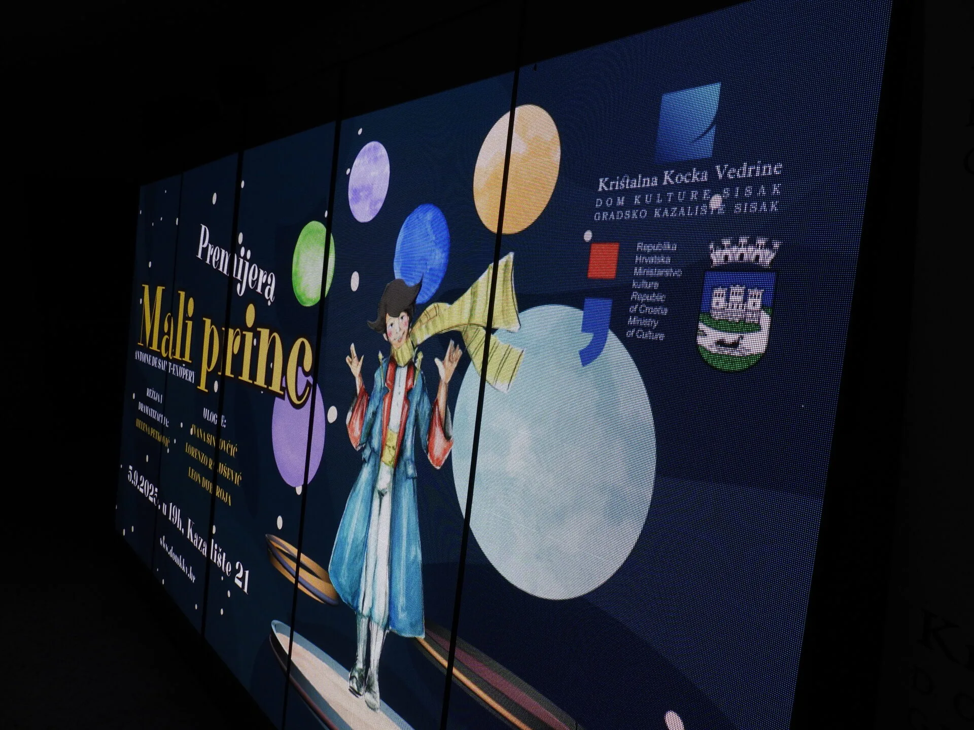 Mali princ, predstava nastala prema tekstu Antoinea de Saint Exupérya, večeras je, u produkciji Gradskog kazališta Sisak i u novoobnovljenoj dvorani Kazališta 21, doživjela svoje premijerno izdanje. Literarni je klasik na kojem su odrasle generacije podjednako ushićenima ostavio je sve prisutne u dvorani, od najmlađih do najstarijih, ali i samih umjetnika na sceni te redateljice, Helene Petković, koja je oko sebe okupila kreativan i iznimno talentiran tim, od scenografa, kostimografa, autora svjetla i glazbe do glumaca izabranih na prethodno održanoj audiciji. Uzdah oduševljenja mnogobrojne publike, ponajprije onih najmlađih, mogao se čuti već po otvaranju zastora koji su pokazali svu privlačnost čarobno slikovite scenografije. Po završetku predstave među publikom se tako moglo čuti da s nestrpljenjem očekuju novu izvedbu.