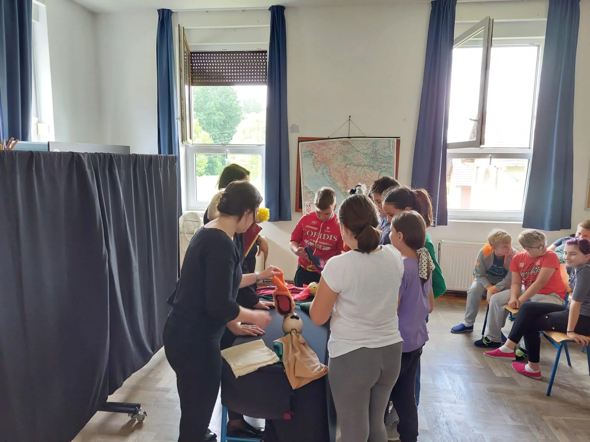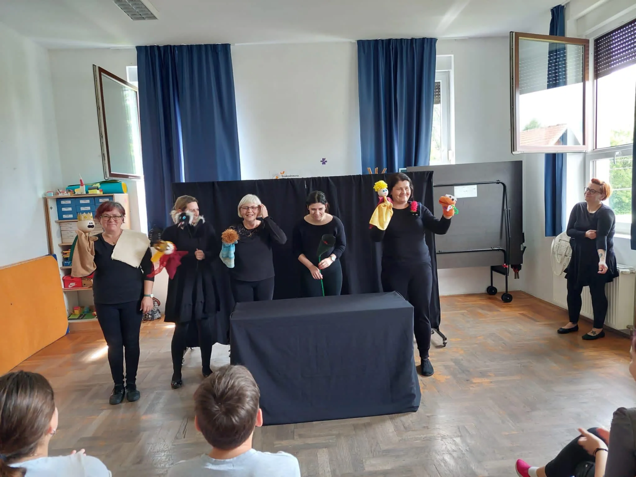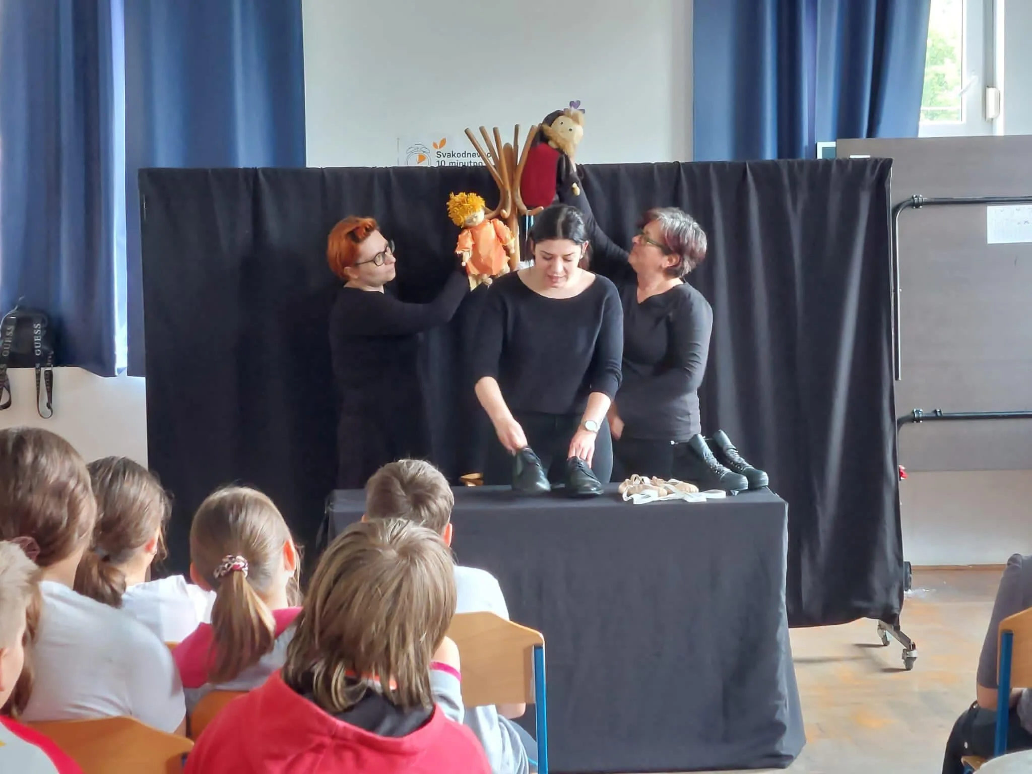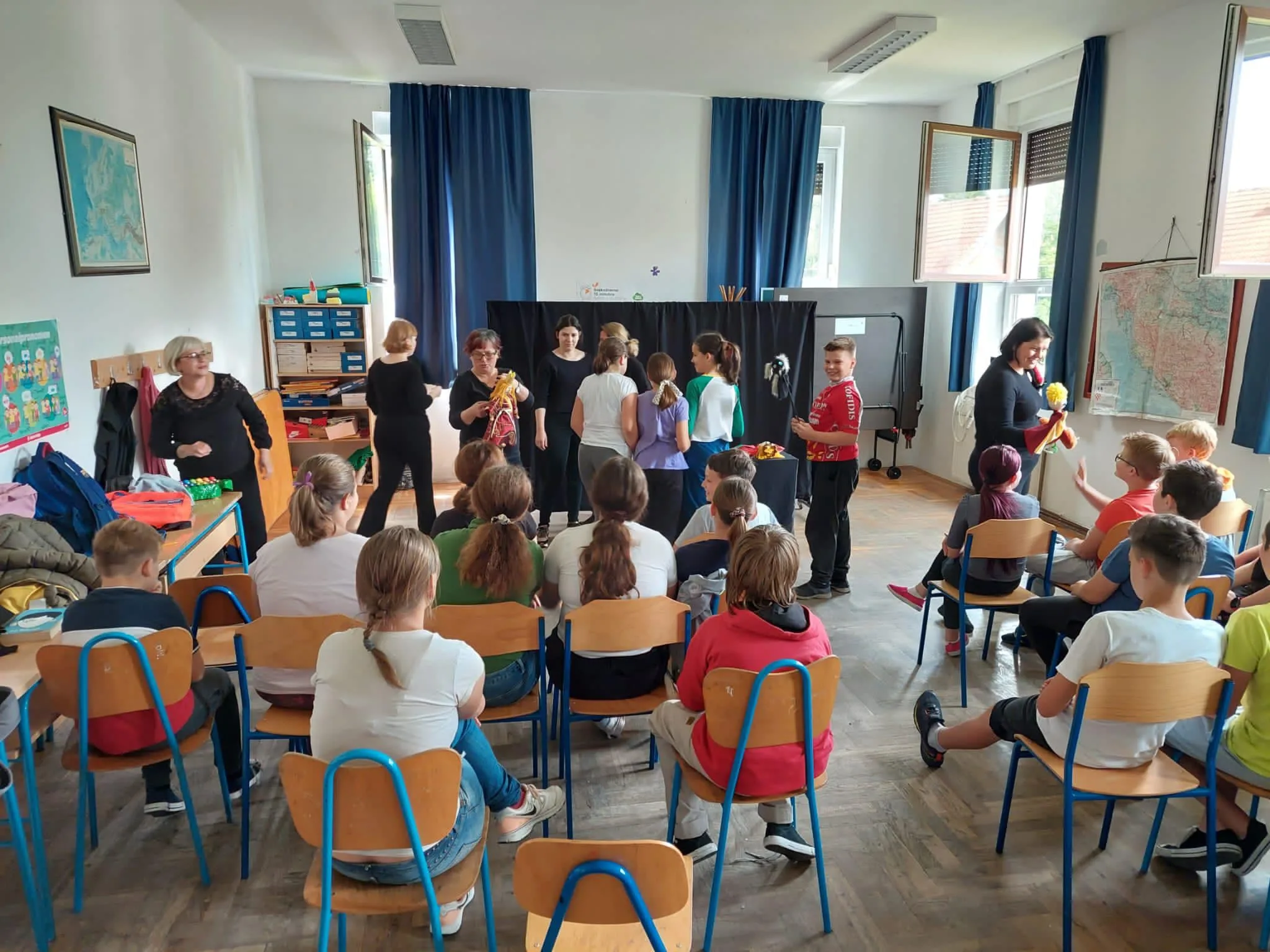 Nakon jučerašnjih izvedbi u OŠ 22. lipnja, Lutkarski studio Perlice danas je nastavio svoju mini-turneju u OŠ Budaševo – Topolovac – Gušće.