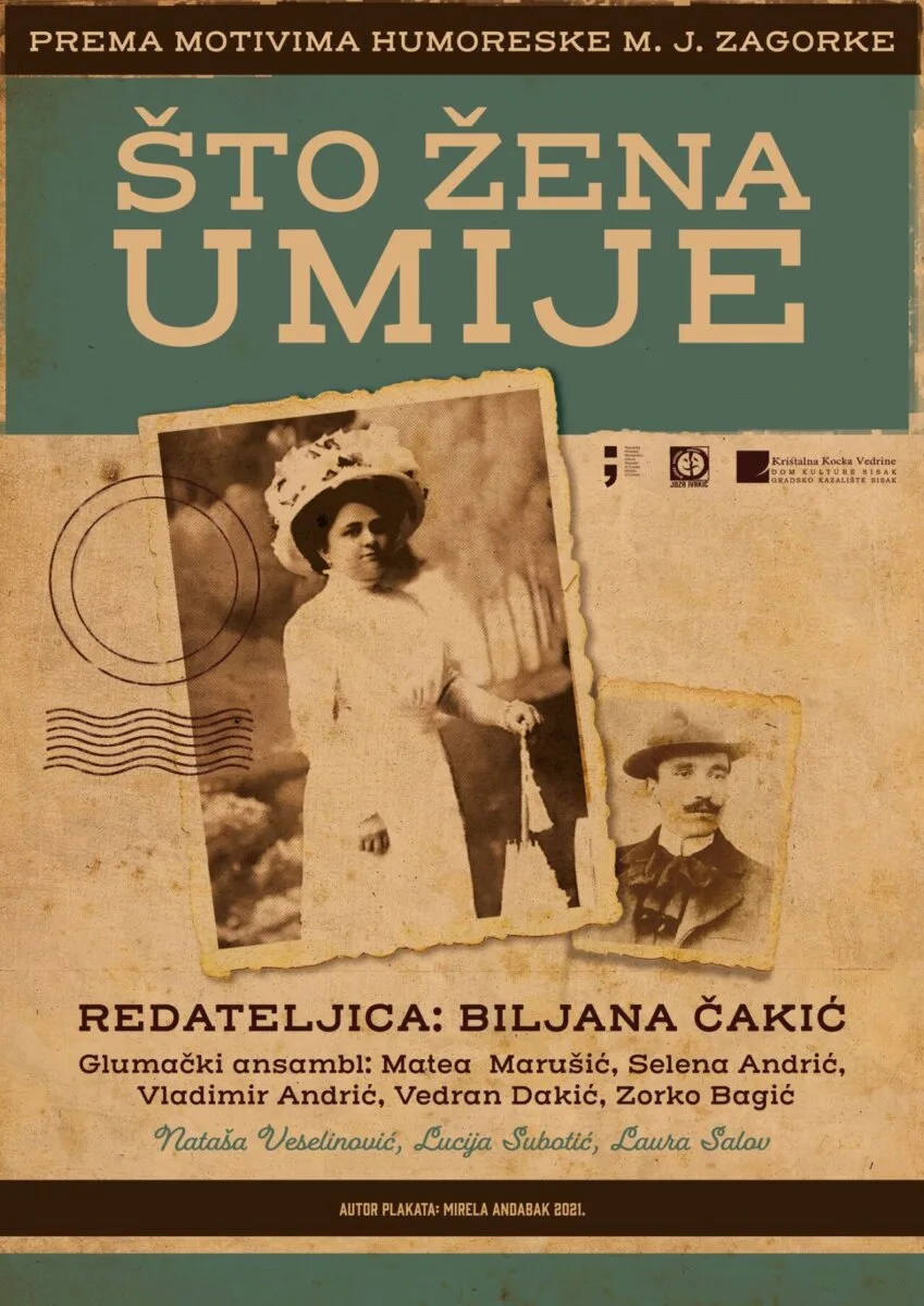Predstava “Što žena umije” nastala je u koprodukciji Gradskog kazališta Sisak i Gradskog kazališta Joza Ivakić Vinkovci. Riječ je o pučkoj igri o feminističkim temama.
