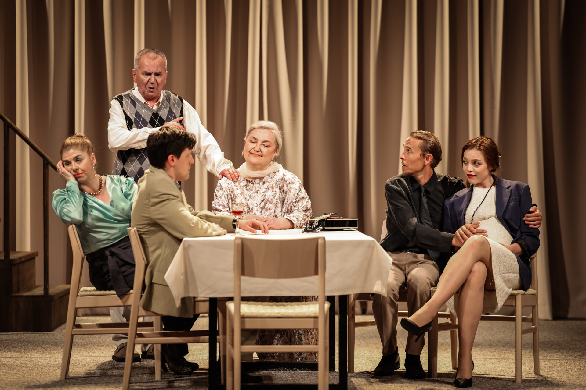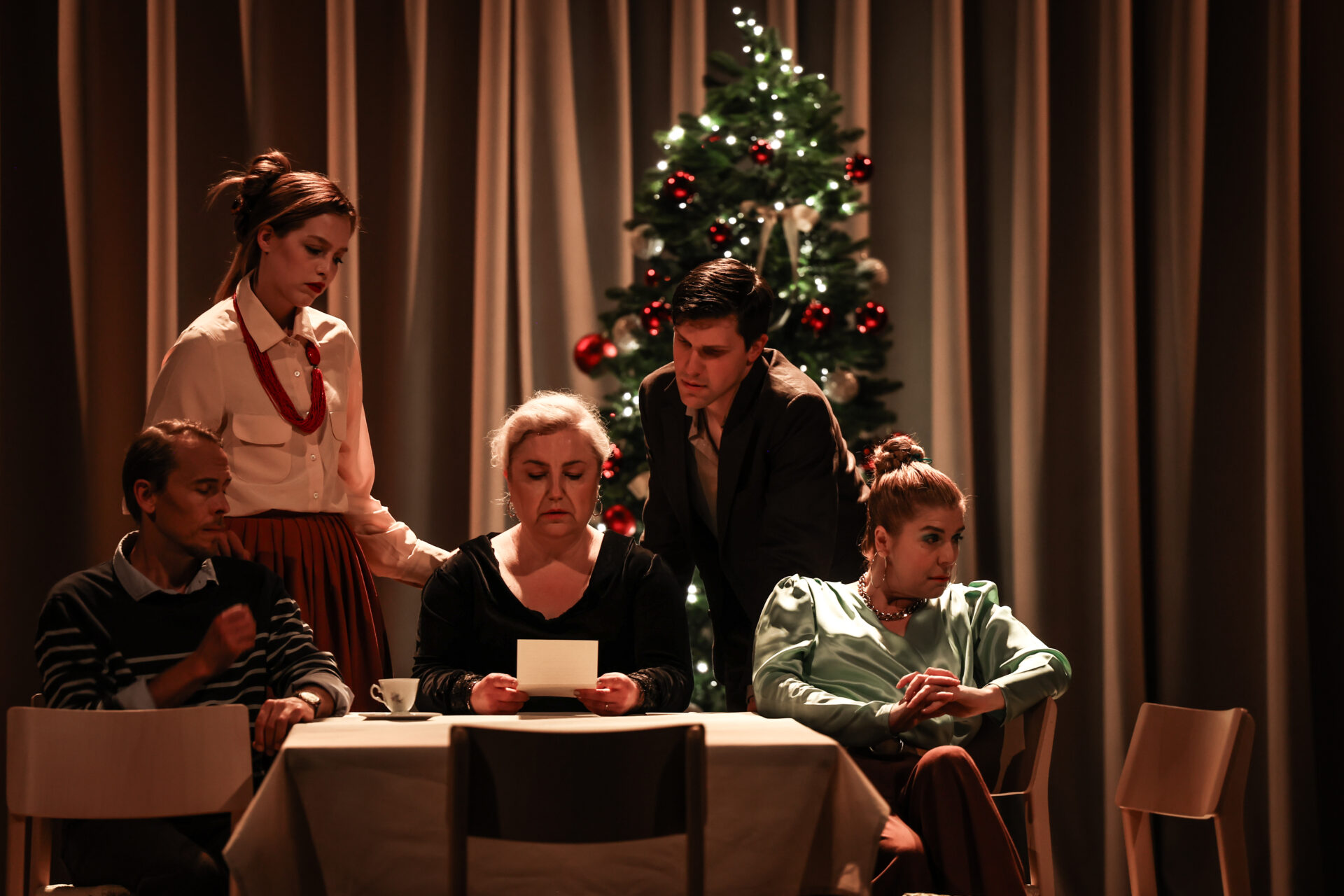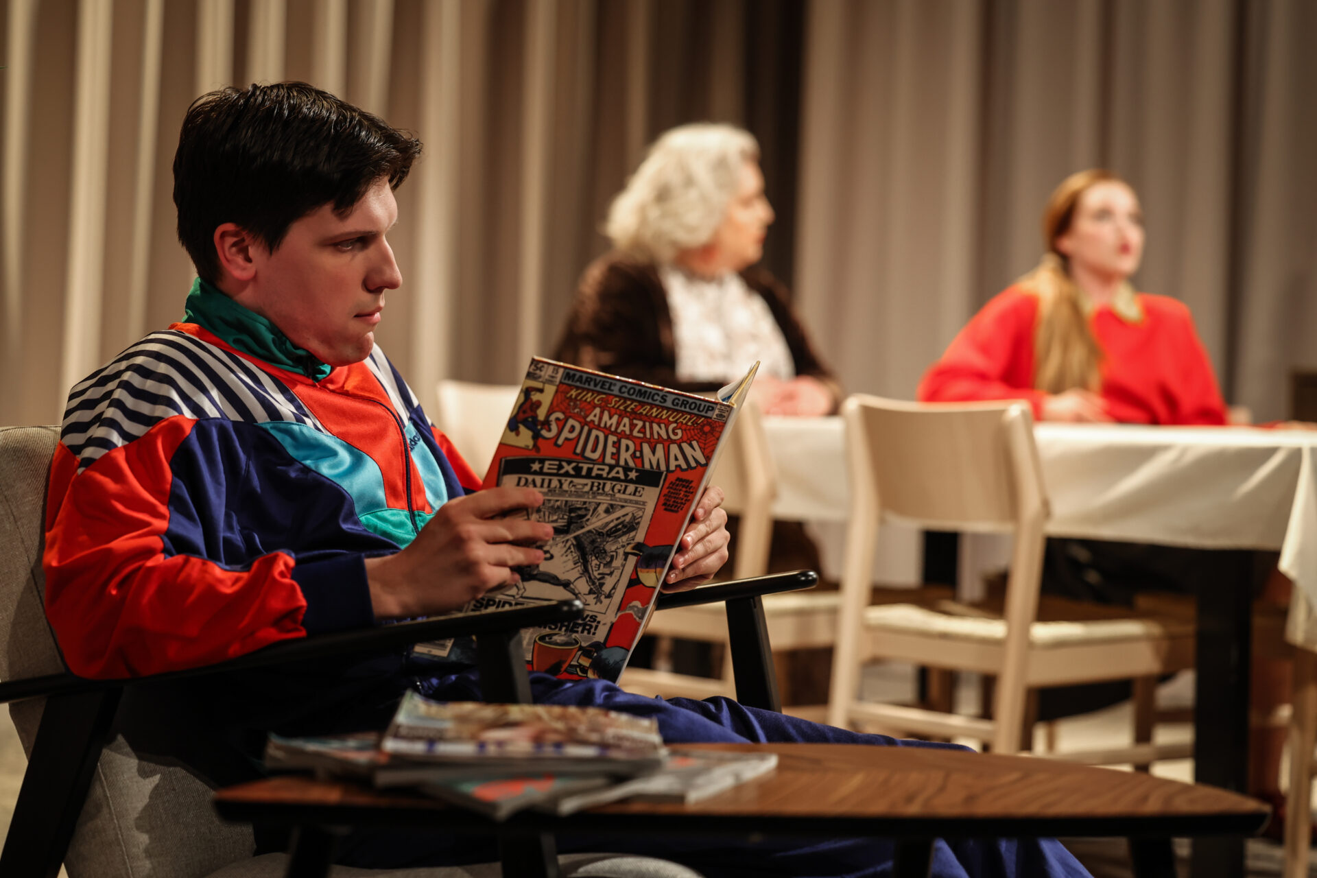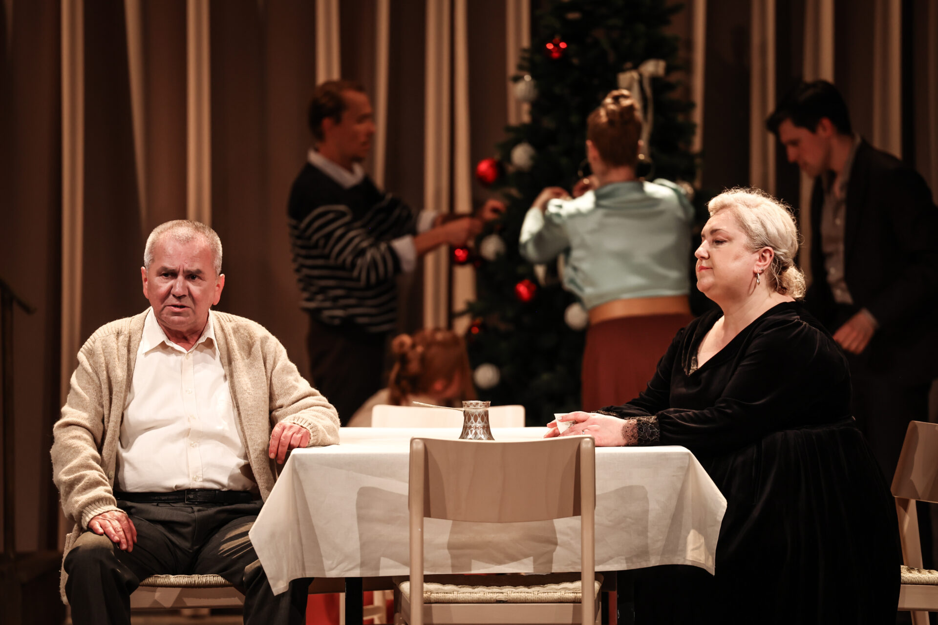 “U očekivanju oca” drama je i o vremenu i o ožiljcima koje stječemo između božićnih i uskrsnih misa dok čekamo da se točno u dva sata za blagdanskim stolom okupe naši najmiliji od kojih očekujemo da nas upravo po ožiljcima prepoznaju. Osim o čekanju i iščekivanju, nova Gavranova drama govori možda najviše o očekivanjima od naših najbližih.