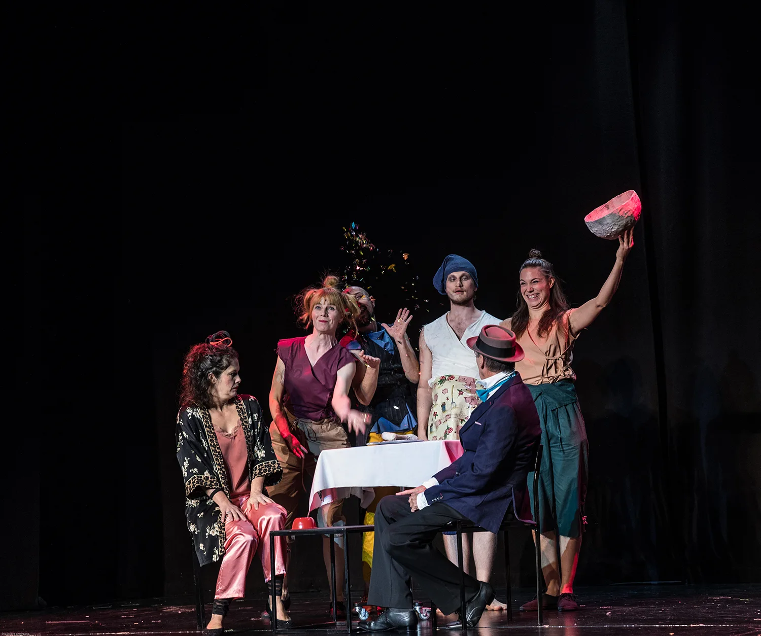 Svjetski majstor fizičke komedije i klaunerije David Shiner nakon Cirque du Soleil-a našao se u Zagrebu i tu otkrio šest klaunova te s njima odlučio ispričati priču. Ovih, kako se sami opisuju, “sedam veličanstvenih bedaka” odlučilo je hrvatskoj publici prirediti predstavu smijeha, kaosa i zabave te će isključivo pokretom, zvukom i uz dobru glazbu publiku odvesti na mistično putovanje. David Shiner u predstavi i glumi, a osim njega na pozornici će vas zabavljati Bojan Ban, Ivan Đuričić, Iskra Jirsak, Domagoj Ivanković, Nikolina Majdak/Irena Tereza Prpić i Iva Peter Dragan.