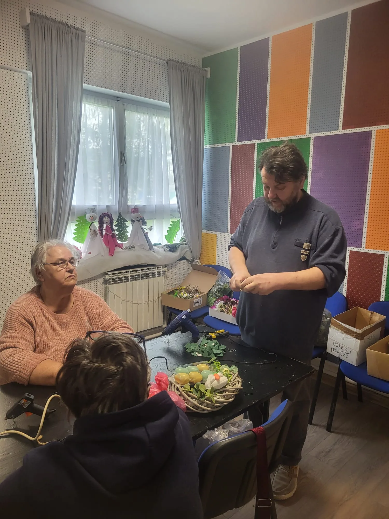 Uz stručno vodstvo Borisa Lemaića i pomoć vrijedne Natalije Ceković razveselio nas je ponovni dolazak korisnika Doma za starije Sisak s njihovom voditeljicom Vanjom. Zajedno smo uz puno strpljenja, mašte i veselja izrađivali ukrase za uskršnji stol, ali još više – stvarali lijepe uspomene.